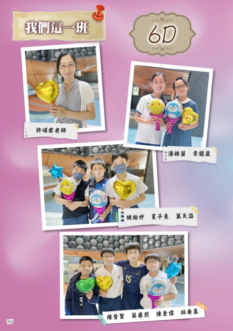 我們這一班 6D 許頌君老師 潘皓茵 李鎧嵐 姚柏仲 夏子堯 葉天溢 陳晉賢 蔡睿熙 陳青偉 林希晨 94 94