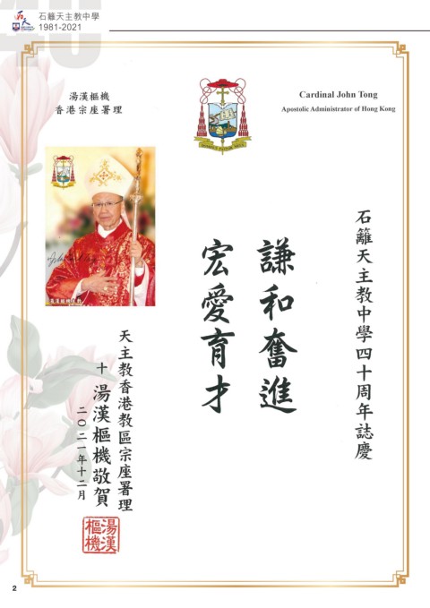 40 石籬天主教中學 1981-2021 石籬天主教中學 40周年校慶 1 981 - 2021 2 2