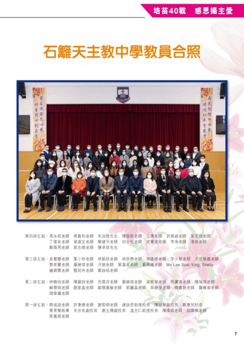 第三排左起:吳靈豐老師 葉小玲老師 林凱欣老師 林欣懋老師 馮遠婷老師 李少慧老師 司徒雁霞老師