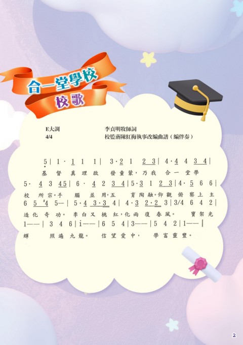 合一堂學校 校 歌 E大調 李貞明牧師詞 4/4 校監蔣陳紅梅執事改編曲譜(編伴奏) 2 2