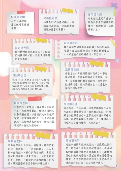 改變,祂會陪伴你們走上人生的每段 知識,在中學展開人生的新一頁,繼續在不