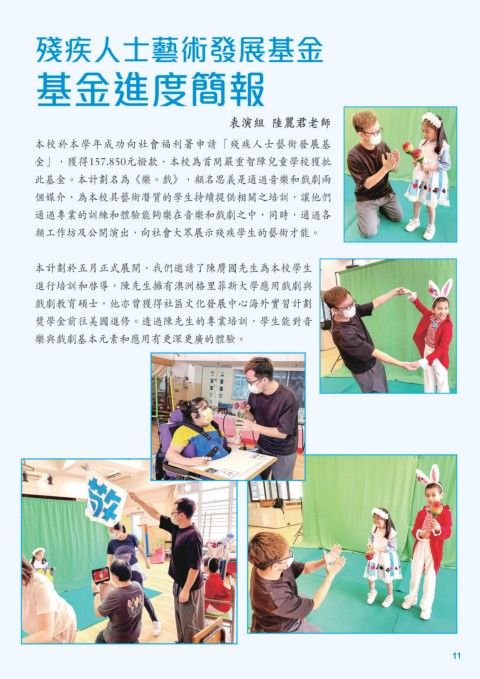 本校於本學年成功向社會福利署申請「殘疾人士藝術發展基