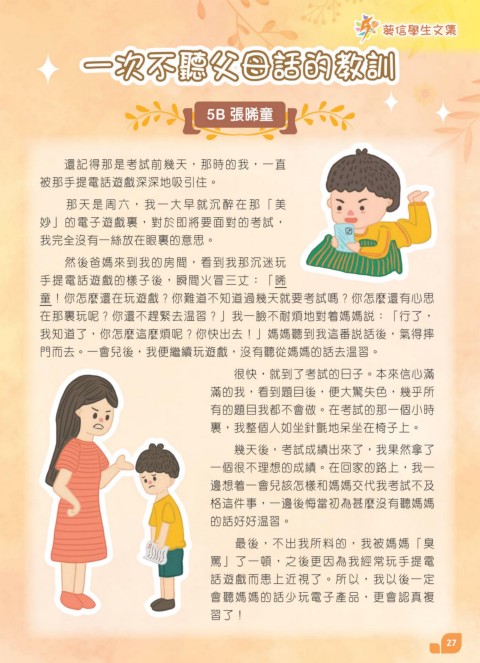 在那裏玩呢?你還不趕緊去温習?」我一臉不耐煩地對着媽媽說:「行了,