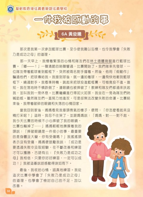 那次是我第一次參加籃球比賽,至今使我難以忘懷,也令我學會「失敗