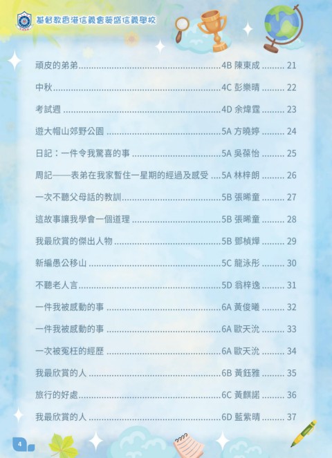 日記:一件令我驚喜的事....................................5A.吳葆怡.......... 25