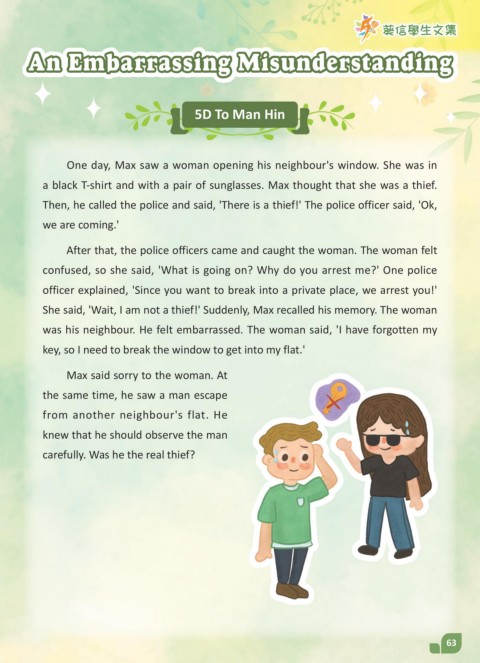 was his neighbour. He felt embarrassed. The woman said, 'I have forgotten my