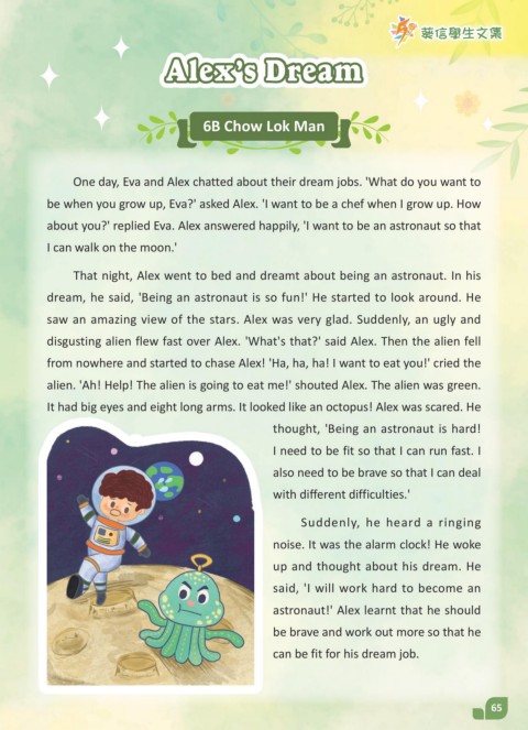about you?' replied Eva. Alex answered happily, 'I want to be an astronaut so that