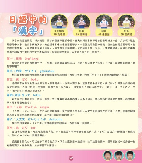 認識日本的文化,可以先多了解它的文字,下次大家到日本旅遊時,除了欣賞美景外,還可嘗試找一找身邊一些