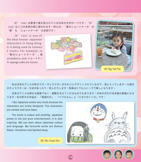 ります。私の好きな作品は、「鬼滅の刃」、「ドラえもん」と「となりのトトロ」です。