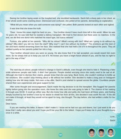 The next day at school, people noticed a change in Sachi’s attitude, even though she tried to hide it. Plastering a fake