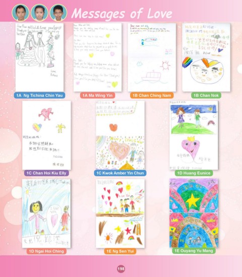 Messages of Love 1A Ng Tichina Chin Yau 1A Ma Wing Yin 1B Chan Ching Nam 1B Chan Nok 1C Chan Hoi Kiu Elly 1C Kwok Amber Yin Chun 1D Huang Eunice 1D Ngai Hoi Ching 1E Ng Sen Yui 1E Ouyang Yu Mang 198