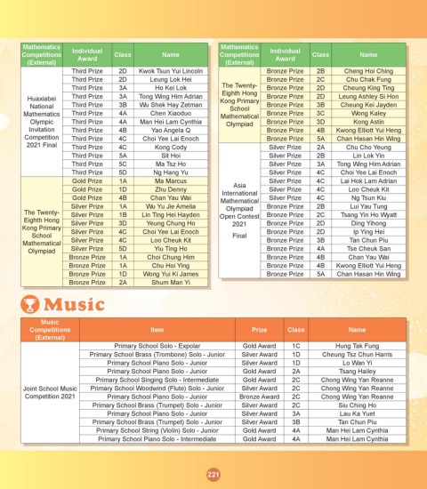 Mathematics Third Prize 4A Chen Xiaoduo Mathematical Bronze Prize 3C Wong Kaley