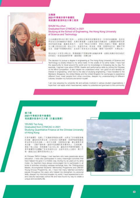 現在的我十分享受大學生活,更積極擔任不同類型學生組織的幹事,這實在有賴於母校為我打