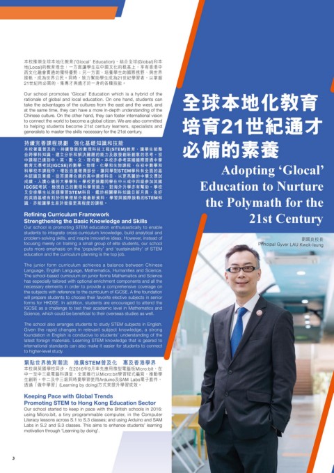 本校推崇全球本地化教育(‘Glocal’ Education),結合全球(Global)和本