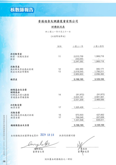 核數師報告 香港進食失調康復會有限公司 ( 2020-2021 年報) 18