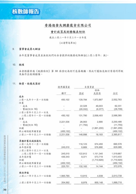 核數師報告 香港進食失調康復會有限公司 ( 2020-2021 年報) 30