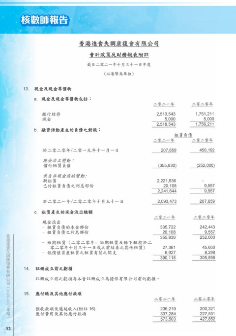 核數師報告 香港進食失調康復會有限公司 ( 2020-2021 年報) 32