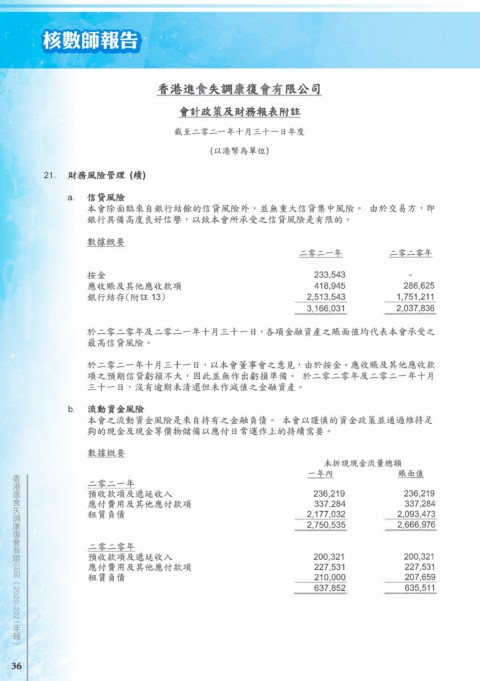 核數師報告 香港進食失調康復會有限公司 ( 2020-2021 年報) 36