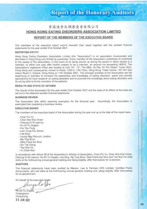 Report of the Honorary Auditors Hong Kong Eating Disorders Association Limited (2020-2021 ANNUAL REPORT) 39