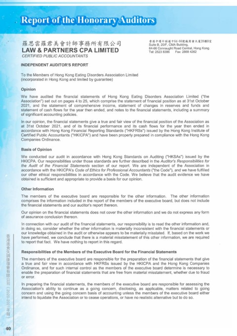 Report of the Honorary Auditors 香港進食失調康復會有限公司 ( 2020-2021 年報) 40