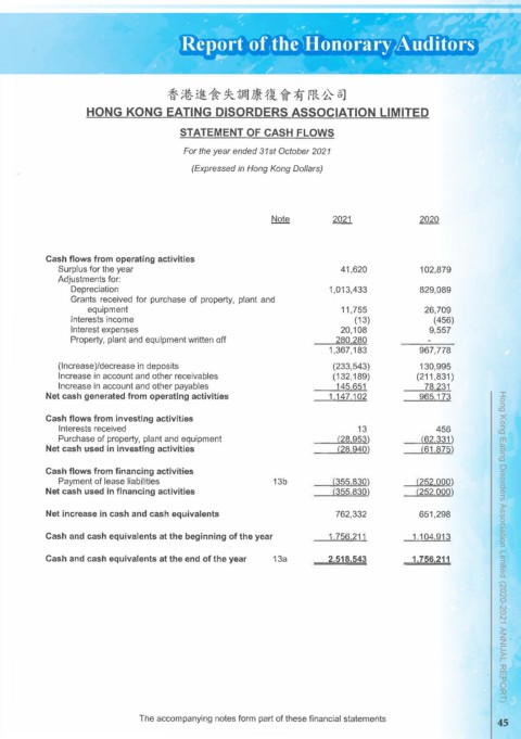 Report of the Honorary Auditors Hong Kong Eating Disorders Association Limited (2020-2021 ANNUAL REPORT) 45