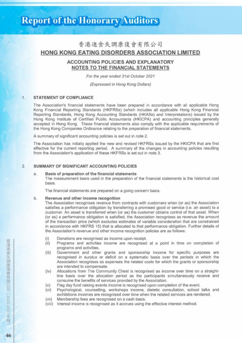Report of the Honorary Auditors 香港進食失調康復會有限公司 ( 2020-2021 年報) 46