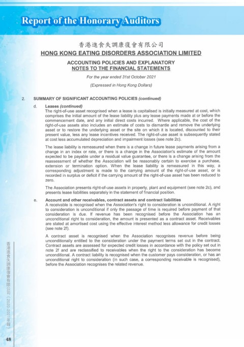 Report of the Honorary Auditors 香港進食失調康復會有限公司 ( 2020-2021 年報) 48