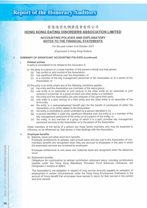 Report of the Honorary Auditors 香港進食失調康復會有限公司 ( 2020-2021 年報) 50