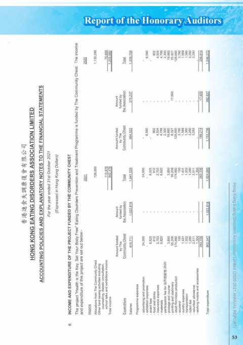 Report of the Honorary Auditors Hong Kong Eating Disorders Association Limited (2020-2021 ANNUAL REPORT) 53