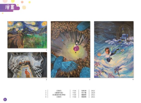 繪畫 1 2 3 4 1 《渴求》 F.5A 徐希淋 2021 2 《廢棄村莊》 F.6C 何子喬 1819 3 《紅葉森林鳥爭鳴》 F.5D 鍾穎熙 2021 4 《渴求》 F.5D 陳肇熙 2021 16
