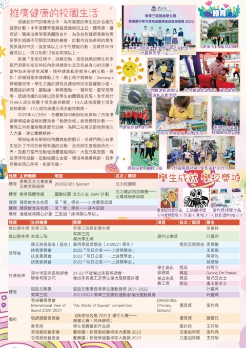 健康計劃。本年度體育發展組透過與班主任、體育課、護
