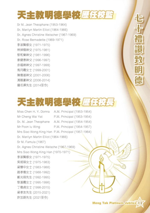 天主教明德學校 歷任校監 致 讚 德 明 讚 致 禮 七 十 十 禮 七 明 德