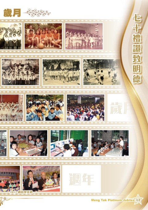 明德 歲月 致 讚 德 明 禮 禮 讚 七 十 致 七 十 明 德 歲月 週年 2012 鑽禧畢業禮 2012 鑽禧畢業禮 17 Meng T ak Pla tinum J ubilee 17 Meng Tak Platinum Jubilee