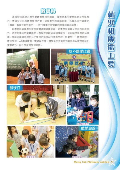 性。教師安排適切的多元化學習活動及配合情境學習,如數學日、數學遊踪、
