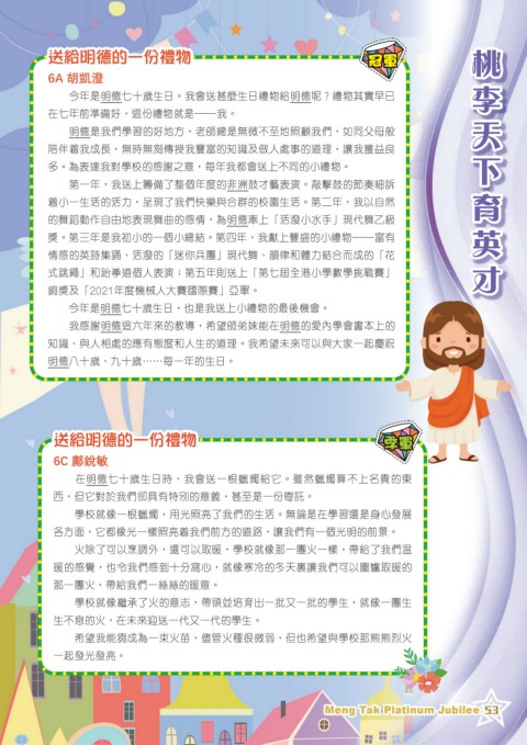 知識、與人相處的應有態度和人生的道理。我希望未來可以與大家一起慶祝