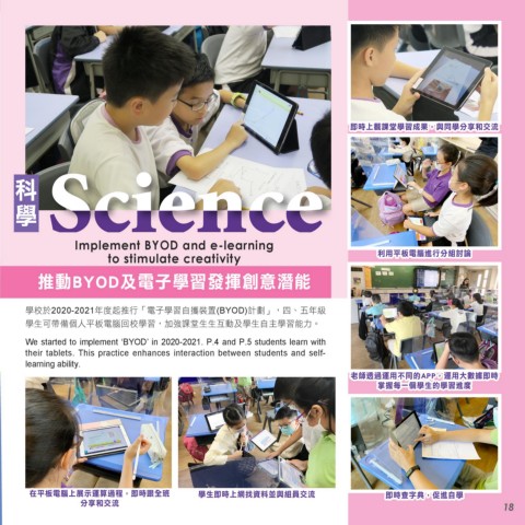 We started to implement ‘BYOD’ in 2020-2021. P.4 and P.5 students learn with