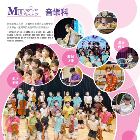 Music 音樂科 usic ீཀࠪᆀʃ˂Դe࢝ᖵѥձࠪᆀԮΝᆀึഃ ڌစ̨̻dᜫΝኪࡁ࢝ତʔΝٙࠪᆀᆑঐf Performance platforms such as Little Music Angels, annual concert and recess performance allow students to exploit their musical potential. 盡展 所長 發掘 才能 多才 多藝 25
