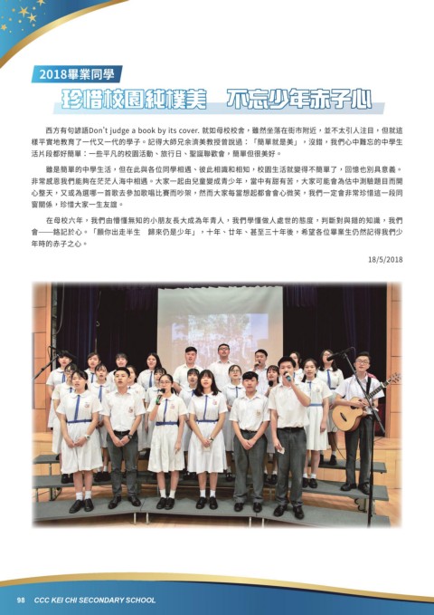 雖是簡單的中學生活,但在此與各位同學相遇、彼此相識和相知,校園生活就變得不簡單了,回憶也別具意義。
