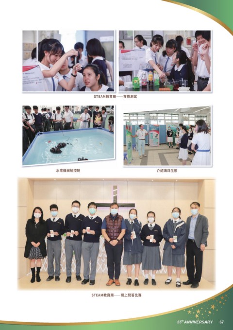 STEAM教育周 食物測試 水底機械船控制 介紹海洋生態 STEAM教育周 網上問答比賽 th 55 ANNIVERSARY 67