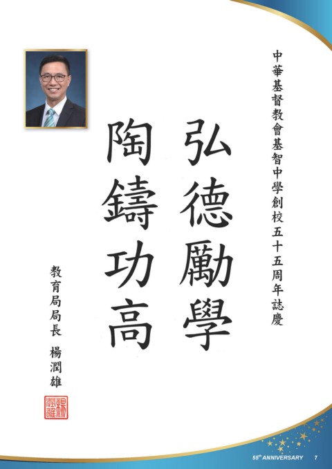 周 五 年 慶 誌 十 督 教 會 中 華 基 基 創 校 五 智 中 學 局 局 教 育 長 雄 潤 楊 th 55 ANNIVERSARY 7
