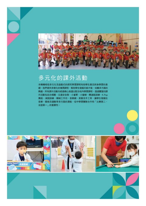 5 邁向小學光輝里程 興趣。所有課外活動均經過精心挑選以配合校內學習課程。透過豐富的課