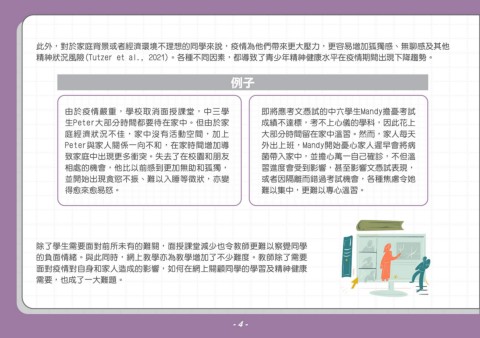 精神狀況風險(Tutzer et al., 2021)。各種不同因素,都導致了青少年精神健康水平在疫情期間出現下降趨勢。