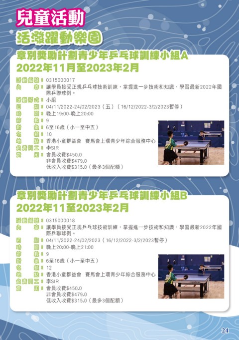 內 容 容 內 : : 讓學員接受正規乒乓球技術訓練,掌握進一步技術和知識,學習最新2022年國