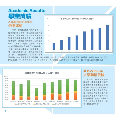 Academic Results 30 本校學生於文憑試考獲5科19分或以上比率