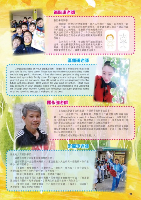在未來的日子,少不免會遇到不同程度的難題,希望同學升中後能繼