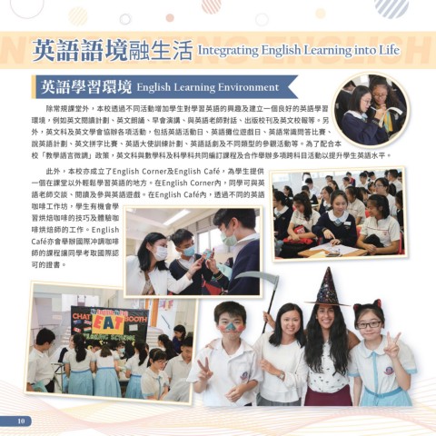 除常規課堂外,本校透過不同活動增加學生對學習英語的興趣及建立一個良好的英語學習