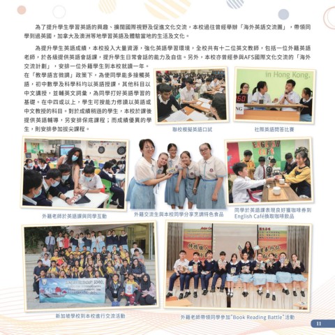 老師,於各級提供英語會話課,提升學生日常會話的能力及自信。另外,本校亦曾經參與AFS國際文化交流的「海外