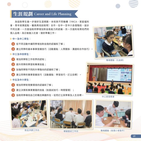為協助學生進一步做好生涯規劃,本校與不同機構(YMCA、家庭福利
