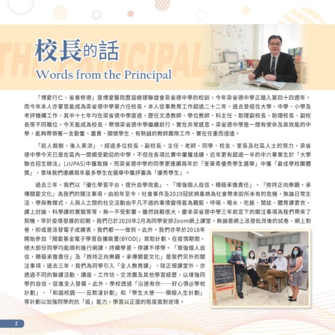 而今年本人亦蒙恩能成為梁省德中學第六任校長。本人從事教育工作超過二十二年,過去曾經在大學、中學、小學及