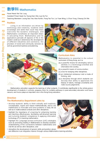 and attitudes in an integrative manner through various Mathematics learning activities.